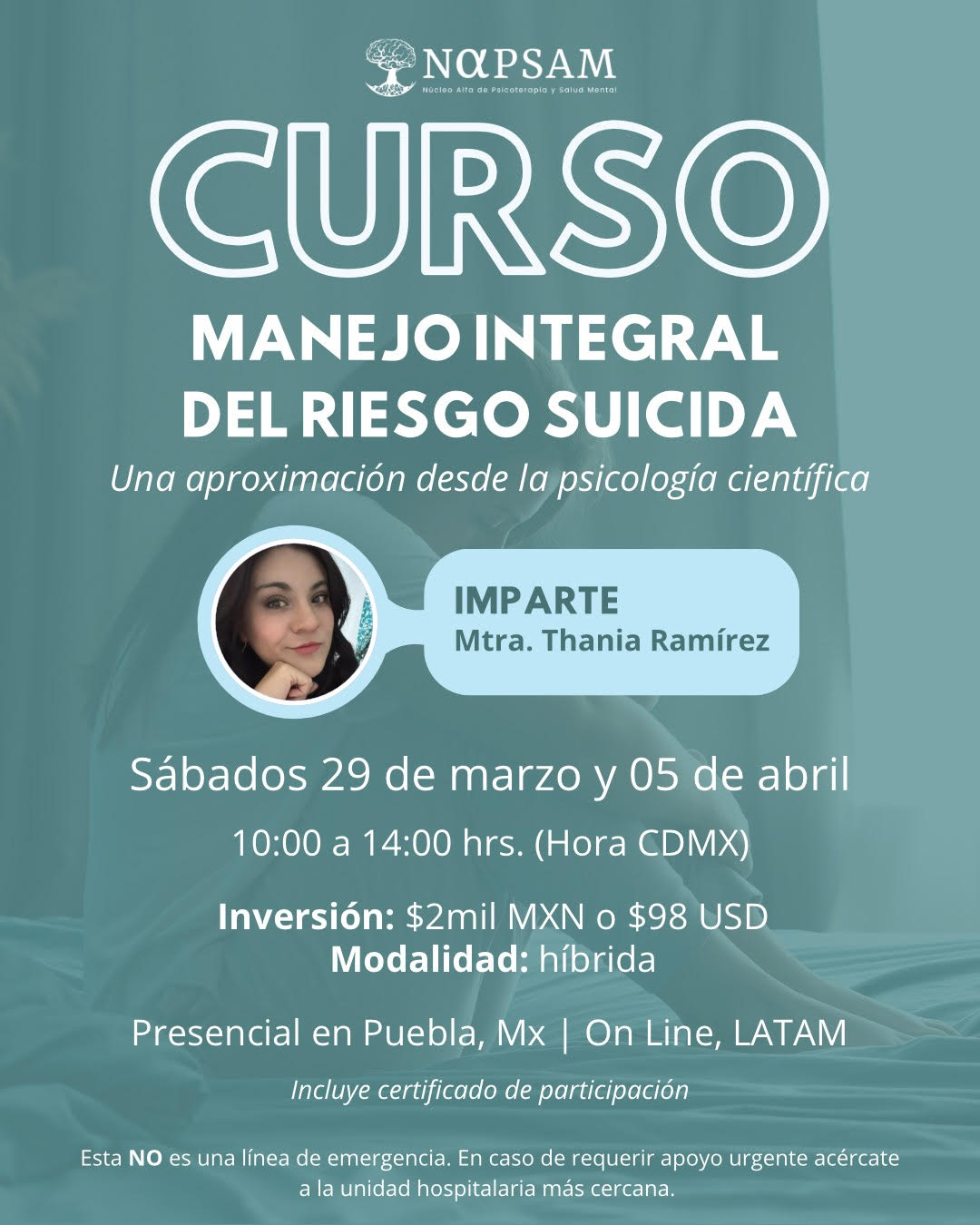 El curso de manejo integral del riesgo suicida conjunta la comprensión del fenómeno y las técnicas de intervención más recientes basadas en evidencia.